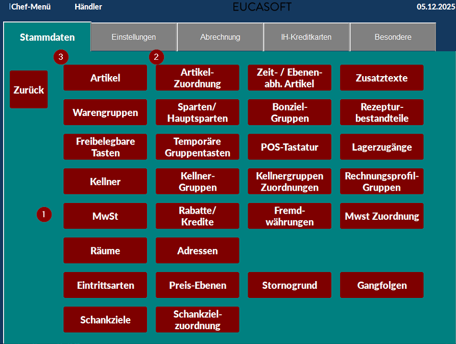 2. nachdem Sie die Chef Taste getippt haben, tippen Sie auf den Reiter Stammdaten
