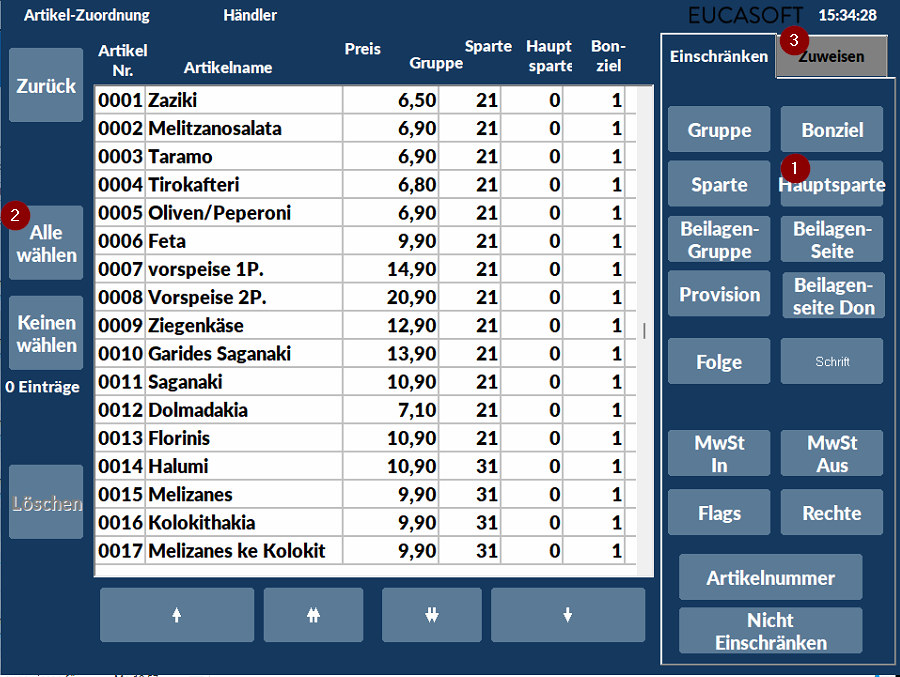 5. tippen Sie nun auf den Knopf [Artikelzuordnung], Sie gelangen in folgendes Menü