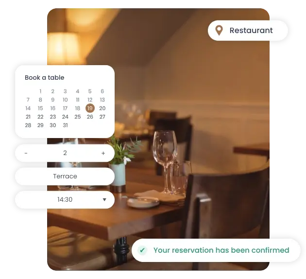 Erhöhen Sie die Erreichbarkeit Ihres Restaurants, indem Sie Reservierungen über Ihre Website, Ihr Telefon usw. entgegennehmen und diese direkt von überall aus verwalten.