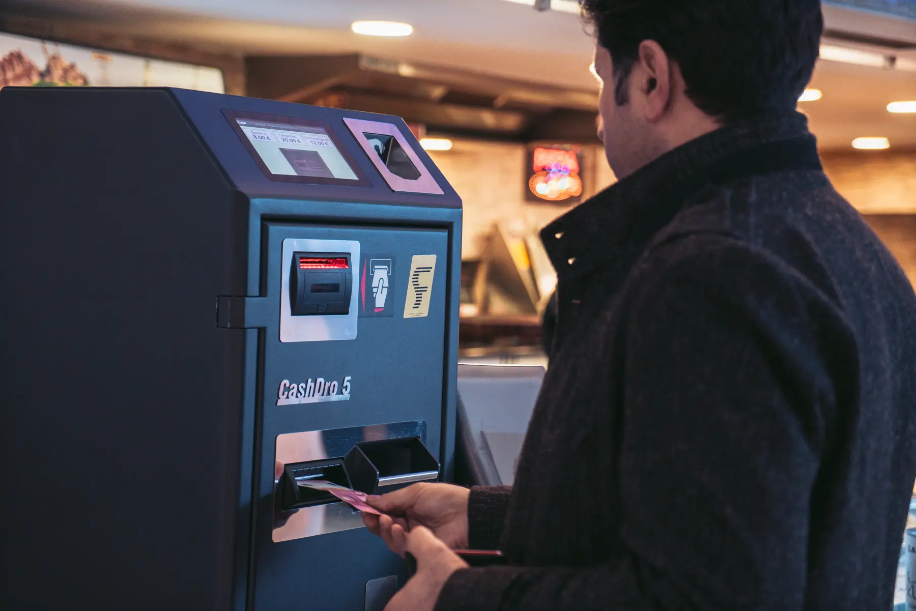 CashDro ist ein professionelles Geldverarbeitungs-Terminal. Bequem und unkompliziert zahlt der Kunde hier seine Ware bar oder per Karte.